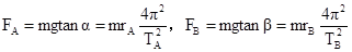 本题解析:设系A、B两铁球的细线与竖直方向夹角分别为α、β,由图知α>β,又受力分析可知A、B的向心力分别为FA=mgtanα,FB=mgtanβ,根据α>β知FA>FB,故A错,D对。由牛顿第二定律知
