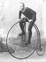 2、选择题 如图所示为一种早期的自行车,这种不带链条传动的自行车前轮的直径很大。若某人骑着自行车向前行驶时,关于该自行车的前、后轮轮缘各点,下列说法正确的是