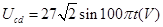 πt( V),选项A 错误;变压器初级电压有效值为27V,则次级电压为:
