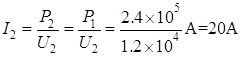 升压变压器的输出电压为U2,,U2=1.2×104V