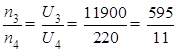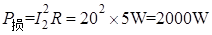 (2)降压变压器输入电压:U3=U2-U线=U2-I2R=1.2×104-20×5V=11900V