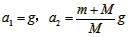2、选择题 如图,轻弹簧上端与一质量为m的木块1相连,下端与另一质量为M的木块2相连,整个系统置于水平放置的光滑木板上,并处于静止状态。现将木板沿水平方向突然抽出,设抽出后的瞬间,木块1、2的加速度大小分别为a1、a2。重力加速度大小为g。则有