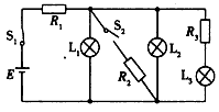 3、选择题 如图所示,电动势为E、内阻不计的电源与三个灯泡和三个电阻相接只合上开关S1,三个灯泡都能正常工 作如果再合上S2,则下列表述正确的是