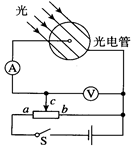 C.只要电源的电压足够大,将变阻器的触头c向a端移动,则光电管中可能没有光电子产生