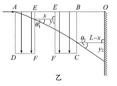 (3)现将电场(场强为E)分成AEFD和EBCF相同的两部分,并将EBCF向右平移一段距离x(x≤L),如图乙所示。设粒子打在荧光屏上位置与0点相距y,请求出y与x的关系?