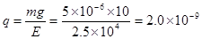 根据题意,可知该微粒带负电,有 qE =" mg"