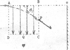 3、计算题 如图甲所示,边长为L的正方形区域ABCD内有竖直向下的匀强电场,电场强度为E,与区域边界BC相距L处竖直放置足够大的荧光屏,荧光屏与AB延长线交于O点。现有一质量为m,电荷量为+q的粒子从A点沿AB方向以一定的初速进入电场,恰好从BC边的中点P飞出,不计粒子重力。