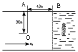 2、填空题 有一小船正在渡河,如图所示,在离对岸30m时,发现其下游40m处有一危险水域。假若水流速度5m/s,为了使小船在危险水域之前到达对岸,那么,小船从现在起相对于静水的最小运动速度应是___________m/s,小船船头应指向___________(填“OA方向”或“OB方向”)。