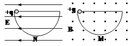 5、选择题 两个相同的半圆型光滑轨道分别竖直放在匀强电场和磁场中,轨道两端在同一高度上,两个相同的带正电的小球同时从两轨道左端最高点由静止释放,M、N为轨道的最低点,以下说法正确的是( )