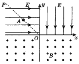 4、计算题 如图所示,xOy平面内,第二象限匀强电场方向水平向右,第一象限匀强电场方向竖直向下,场强大小相等,设为E,而x轴下方区域有垂直于纸面向外的匀强磁场,磁感应强度设为B,图中OP直线与纵轴的夹角α=45°,一带正电的粒子从OP盲线上某点A(-L,L)处由静止释放,重力不计,设粒子质量为m,带电量为q,E、B、m、q均未知,但已知各量都使用国际制单位时,从数值上有