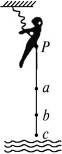 4、简答题 “蹦极”是一项非常有刺激性的体育活动.某人系弹性绳自高空P点自由下落,如图3-7-5所示,a点是弹性绳的原长位置,b点是人静止地悬吊着时的平衡位置,c点是人所到达的最低点.普通人超重达重力的3倍时,就会感到呼吸困难.不计空气阻力,已知弹性绳的劲度系数k="600" N/m(弹性绳的弹力F与其形变量x的关系遵从胡克定律F=kx).设人体重为600 N,考查人从P点落下到最低点c的过程:
