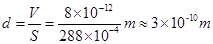 ,把油酸分子看成球形,且不考虑分子间的空隙,因此其直径为: