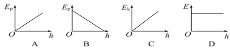 3、选择题 物体自地面上方一定高度处做自由落体运动,Ek表示动能,Ep表示重力势能,E表示机械能,h表示下落的距离,以地面为零势能面,下列图象中能正确反映各物理量关系的是( )