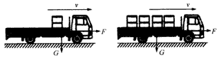 如图所示,两辆车在以相同的速度做匀速运动;根据图中所给信息和所学知识你可以得出的结论是( ? )