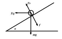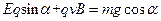 2、简答题 如图,足够长的光滑绝缘斜面与水平面的夹角为α=370,其置放在有水平方向的匀强电场和匀强磁场中,电场强度E=50V/m,方向水平向左,磁场方向垂直纸面向外,一个电荷量q=+4.0×10-2C、质量m=0.40kg的光滑小球,以初速度V0=20m/s从底端向上滑动,然后又向下滑动,共经过3s脱离斜面。求该磁场的磁感应强度。(g取10m/s2)
