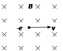2、填空题 电子以速度v垂直进入匀强磁场,磁场方向如图所示,此时所受洛仑兹力的方向___