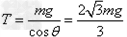 4、计算题 如图所示,质量为m的物体处在静止状态。细线OA与竖直方向成30°角,则细线OA、OB的拉力各为多少?