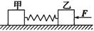 2、选择题 如图所示,在光滑的水平面上有甲、乙两个木块,质量分别为m1和m2,中间用一原长为L、劲度系数为k的轻弹簧连接起来,现用一水平力F向左推木块乙,当两木块一起匀加速运动时,两木块之间的距离是