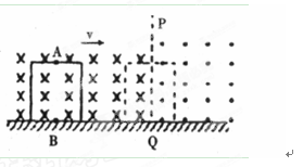 2、填空题 如图所示,在光滑水平面上方,有两个磁感应强度大小均为B、方向相反的水平匀强磁场,如图所示,PQ为两个磁场的边界,磁场范围足够大。一个边长为a,质量为m,电阻为R的正方形金属线框垂直磁场方向,以速度v从图示位置向右运动,当线框中心线AB运动到与PQ重合时,线框的速度为