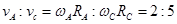 1、填空题 图为一皮带传动装置的示意图。在转动过程中不打滑,RA∶RB∶RC =2∶3∶5。两皮带轮边缘上的点的线速度大小之比VA∶VB∶VC=?及角速度之比ωA∶ωB∶ωB=?,向心加速度aA∶aB∶aC=?