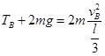 ,解得TA=0,可知轻杆此时对球A作用力等于0,故B正确;当B球运动到最高点时,对B