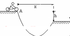 2、计算题 )如图所示,某人骑摩托车在水平道路上行驶,要在A处越过x=5m的壕沟,沟面对面比A处低h=1.25m,(取g=10m/s2)求: