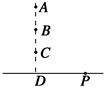4、选择题 如图所示,P是水平地面上的一点,A、B、C、D在一条竖直线上,且AB=BC=CD.从A、B、C三点分别水平抛出一个物体,这三个物体都落在水平地面上的P点.则三个物体抛出时速度大小之比vA∶vB∶vC为 ( ).