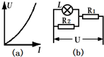 4、选择题 如图(a)所示为灯泡L的U-I特性曲线,R1、R2为定值电阻.如果把这三个用电器并联后接在恒压电源的两端,三个用电器消耗的电功率均为P.现将它们连接为如图(b)所示的电路,再接在该电源的两端,设灯泡L和电阻R1、R2消耗的电功率分别是PL、P1、P2,下列判断正确的是( )