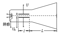 如图所示为示波管的示意图,竖直偏转电极的极板长l=4.0 cm,两板间距离d=1.0 cm,极板右端与荧光屏的距离L=18 cm。由阴极发出的电子经电场加速后,以v=1.6×107 m/s沿中心线进入竖直偏转电场。若电子由阴极逸出时的初速度、电子所受重力及电子之间的相互作用力均可忽略不计,已知电子的电荷量e=1.6×10-19 C,质量m=0.91×10-30 kg。