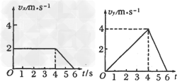 1、计算题 一质量为2kg的物体在水平面上运动。在水平面内建立xoy坐标系。t=0时刻,物体处于原点位置,之后它的两个正交分速度-时间图象分别如图所示。求: