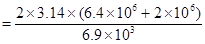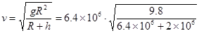 3、简答题  已知地球半径R =6.4×106m,地面附近重力加速度g ="9.8" m/s2,计算在距离地面高为h=2×106m的圆形轨道上的卫星做匀速率圆周运动的线速度v和周期T.