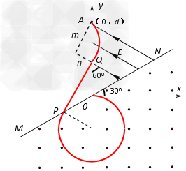 (3)粒子进入电场后做类平抛,设垂直于电场方向的距离为m,电场方向的距离为n,粒子离开电场时经过y轴,其位置坐标为A(0,d),所以?⑦