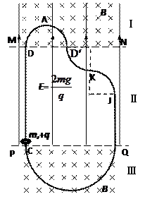 (3)由题意分析可知,当粒子沿着y轴两侧300角射入时,将会沿着水平方向射出磁场区域,之后垂直虚线MN分别从P" 、Q"射入电场区,做类平抛运动,最终到达x轴的位置分别为最远位置P和最近位置Q。?⑩