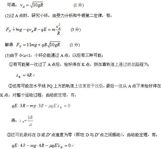 (1)从C到A,洛伦兹力不做功,小环对轨道无压力,也就不受轨道的摩擦力.由动能定理,有:? (3分)