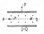 3、选择题  .如图所示为一速度选择器,两极板P、Q之间距离为d,且P接电源负极,Q接正极;板内有一磁感应强度为B,方向垂直纸面向外的匀强磁场,一束粒子流以速度v流经磁场时恰好不偏转(不计重力),则两极板必须加上一定电压U;则下列说法中正确的是(?)