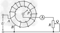 2、选择题 如图所示是一种调压变压器的原理图,线圈AB绕在一个圆环形的铁芯上,AB间加上正弦交流电压U,移动滑动触头P的位置,就可以调节输出电压,在输出端连接了滑动变阻器R和理想交流电流表,变阻器的滑动触头为Q,则下列判断错误的是