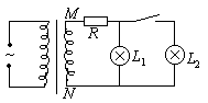 1、选择题 如图所示理想变压器的副线圈上通过输电线接两个相同的灯泡L1和L2,输电线的等效电阻为R。开始时电键K断开。当K接通后,以下说法正确的是