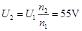 ,在根据电压与匝数成正比可知,副线圈的电压的有效值为55V,即为电压表的读数,所以A错误;