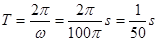 (V),时间t的单位是s。那么,通过电阻R的电流有效值和频率分别为