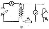 3、选择题 如图甲所示,M是一个小型理想变压器,原副线圈匝数之比n1:n2=10:1,接线柱a、b接上一个正弦交变电源,电压随时间变化规律如图乙所示。变压器右侧部分为一火灾报警系统原理图,其中R2为用半导体热敏材料(电阻随温度升高而减小)制成的传感器,R1为一定值电阻,下列说法中正确的是?