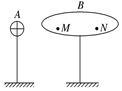 5、选择题  如图所示,A是带正电的球,B为不带电的导体,A、B均放在绝缘支架上,M、N是导体B中的两点。以无限远处为电势零点,当导体B达到静电平衡后,说法错误的是(  )