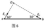 4、选择题 如图6所示,真空中O点有一点电荷,在它产生的电场中有a、b两点,a点的场强大小为Ea,方向与ab连线成60°角,b点的场强大小为Eb,方向与ab连线成30°角。关于a、b两点场强大小Ea、Eb及电势Φa、Φb的关系,以下结论正确的是