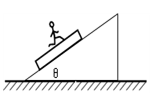 2、填空题 如图所示,质量为M的木板放在倾角为θ的光滑斜面上,质量为m的人在木板上跑,假如脚与板接触处不打滑。欲使人相对斜面静止,则人以a等于__________向__________跑。(填“沿斜面向上”或“沿斜面向下”)