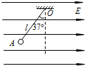 4、简答题 如图所示,长为l的绝缘细线一端悬于O点,另一端系一质量为m、电荷量为q的小球.现将此装置放在水平向右的匀强电场中,小球静止在A点,此时细线与竖直方向成37°角.重力加速度为g,sin37°=0.6,cos37°=0.8.