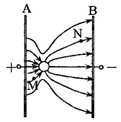 5、选择题 两块竖直放置的带电平行金属板A、B间放一金属小于球,电场线如图所示,M、N为电场中的两点,下列判断中正确的是