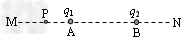 2、选择题  如图所示,在A、B两点上放置两个点电荷,它们的电荷量分别为q1、q2,MN是过a、b的直线,P是直线上的一点。若P点的场强为零,则?