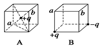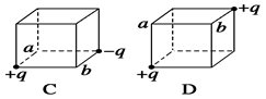 3、选择题 如图所示的真空空间中,仅在正方体中的黑点处存在着电荷量大小相等的点电荷(电荷的正负图中已标注),则图中a、b两点电场强度和电势均相同的是 ( ? )?