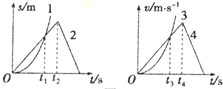 5、选择题 如图所示是物体的位移(s)-时间(t)图象,给出的四条曲线1、2、3、4分别代表四个不同物体的运动情况,关于它们的物理意义,下列描述正确的是( )