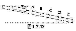 4、选择题 让滑块沿倾斜的气垫导轨由静止开始做加速下滑,滑块上有一块很窄的挡光片,在它通过的路径中取AE并分成相等的四段,如图1-2-17所示,