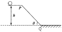 1、选择题 如图所示,一高度为h的光滑水平面与一倾角为θ的斜面在P点连接,该斜面在Q点处与地面连接。一小球以速度v在光滑水平面上向右运动。则小球经过P点后一段时间内